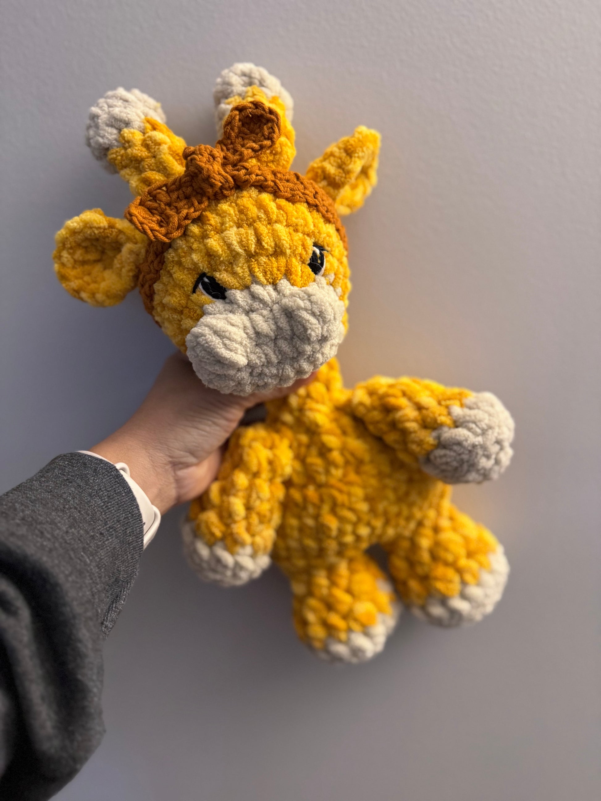 Meet your new favorite cozy companion. Each giraffe snuggle is lovingly crocheted by hand using ultra‑soft plush yarn, making it perfect for cuddles, nursery décor, or a thoughtful handmade gift.
